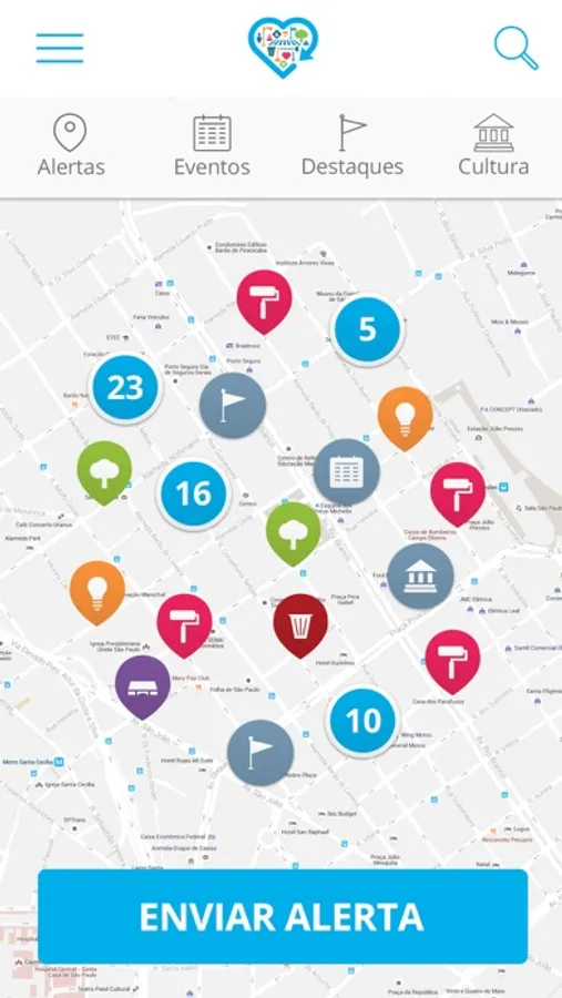 Ao se deparar com situações de irregularidades em manutenção, conservação e limpeza nas ruas do bairro de Campos Elíseos, como entulho nas calçadas, iluminação pública queimada, falta de acessibilidade nas calçadas, entre outros, registre um alerta!