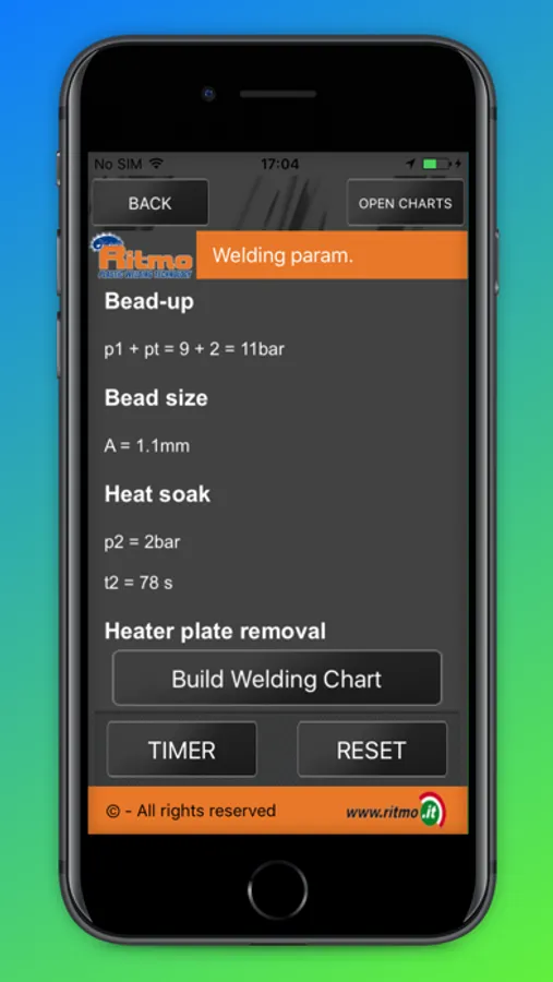 "SET & GO PRO" app developed by RITMO S.p.A. for its butt welders.