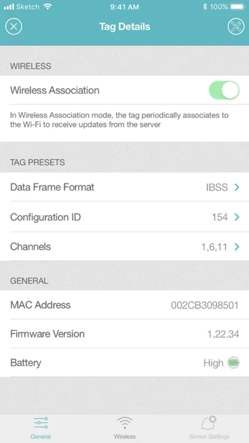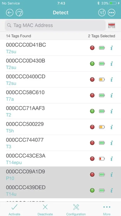 tags via Bluetooth® Low Energy (BLE) technology. The app can be used to detect, activate and view tag details, configure