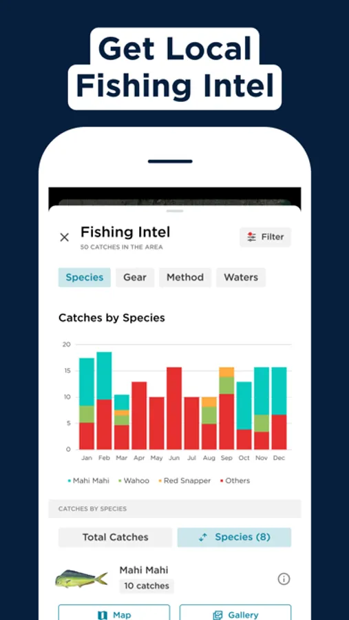 • Explore fishing maps that show locations, fish species & detailed catch information