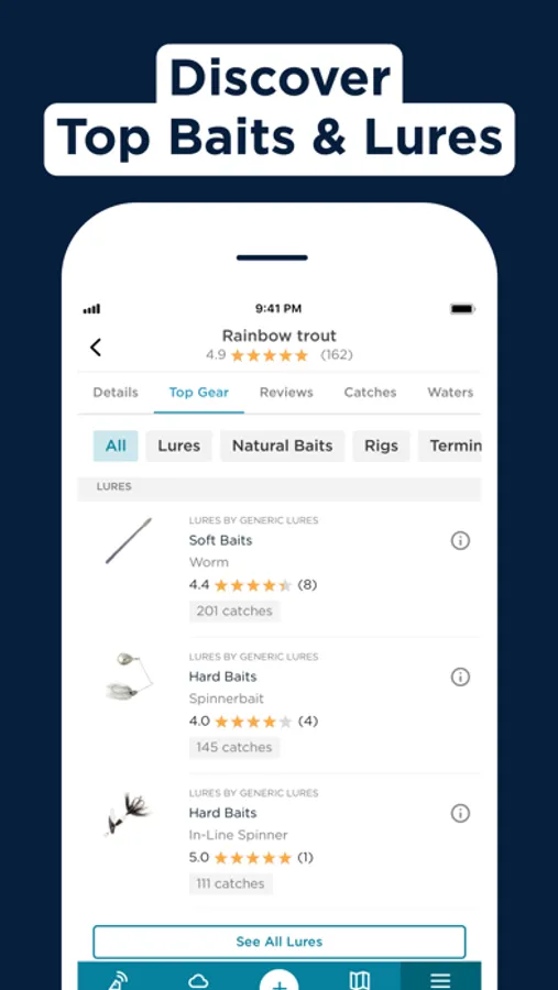 • Stop the guesswork and see aggregated catches with top gear recommendations
