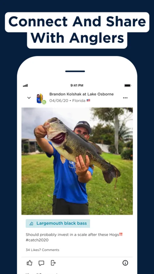 • Connect with Anglers near you, get fishing tips & showoff your catches.