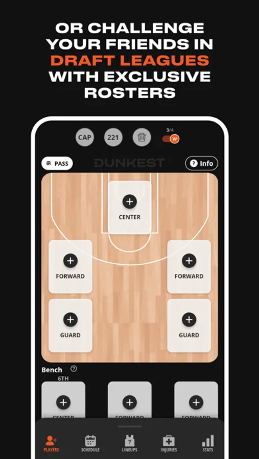 With Dunkest you can create a fantasy basketball team choosing real NBA players. According to the real stats (points, assists, rebounds, etc.), your fantasy-team will receive a score that will determine your ranking. What differentiates Dunkest from the other fantasy games?