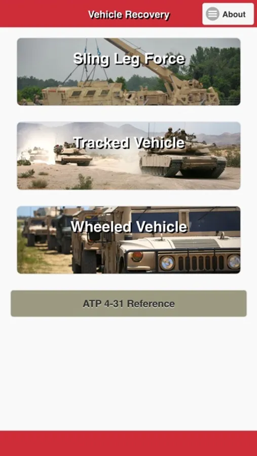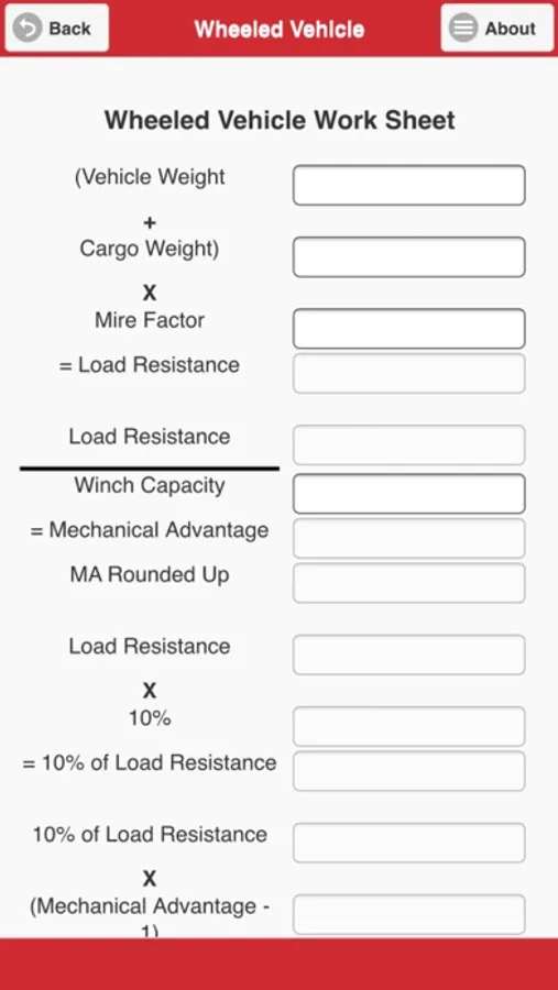 The app is designed to help Army Vehicle recovery personnel in the operational environment. This app incorporates all the rigging, sling leg force, and Mire formulas taught at the recovery school in one easy to reference application. This allows the recovery operator more freedom and accuracy in making decisions before implementing the rigging process. Recovery operators all over the Army have being taught about the basic formulas of recovery. Only a few ever implement it, because often times you don't remember the formulas or it takes too long. This app gives you everything you need to know to make an informed decision before hooking up your rigging.