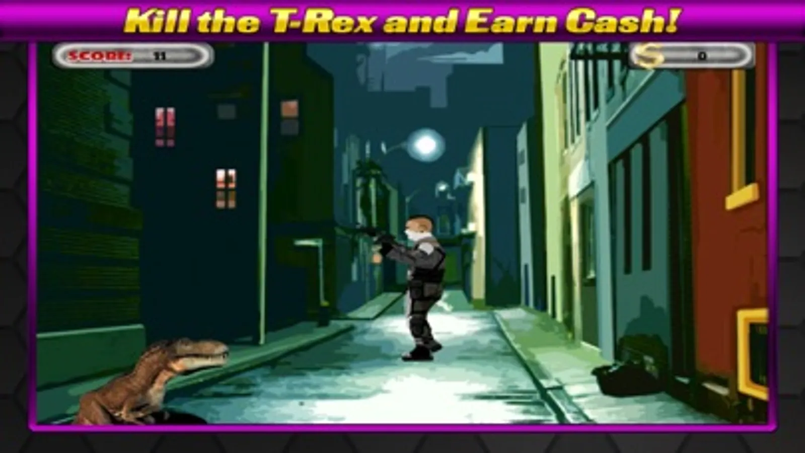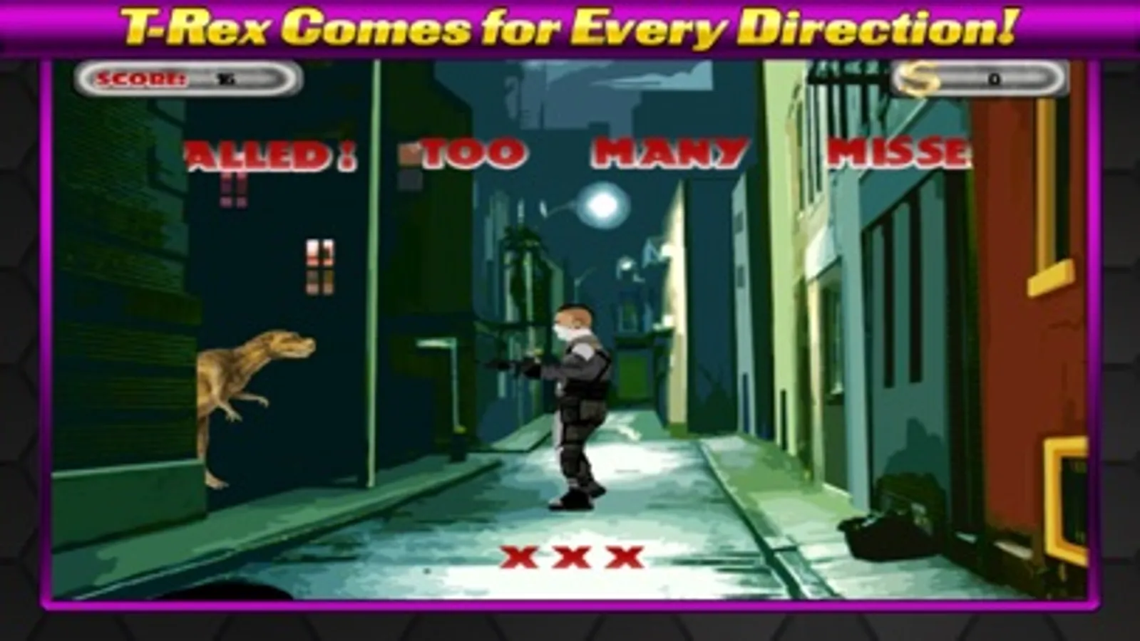 T-Rex and other Dinosaur's have taken over the city. Shoot as many Dinosaurs as you can and earn cash to buy bigger guns! Be careful! The dinosaur's come from every direction and at a fast pace.