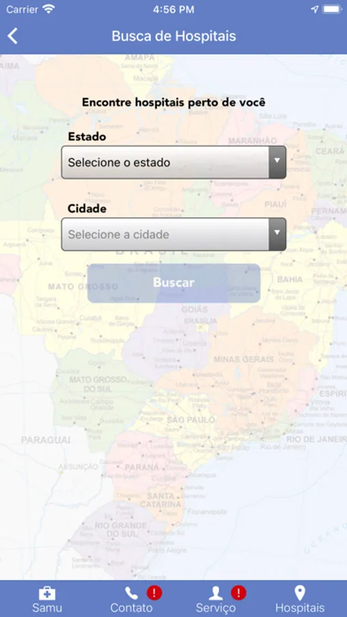 Neste aplicativo, em todas as telas apresentadas, estarão visíveis para acionamento três botões de ligação telefônica instantânea: a pessoa poderá ligar para o SAMU 192, discar para um “Número Amigo” cadastrado previamente ou para um serviço de atendimento pré-hospitalar contratado pelo usuário.