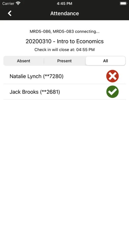 Attendance mobile application connects with the Transact Attendance enterprise cloud application to enable instructors to efficiently record student presence in class. Attendance can then be managed, reported, and exported to other systems via easy to use web browser interface. With Transact Attendance, students are able to simply tap an ID card at mobile readers connected to the iOS device via BLE to check in for class. The application is designed to work online or offline. The instructor can easily view and adjust current class attendance using the application.