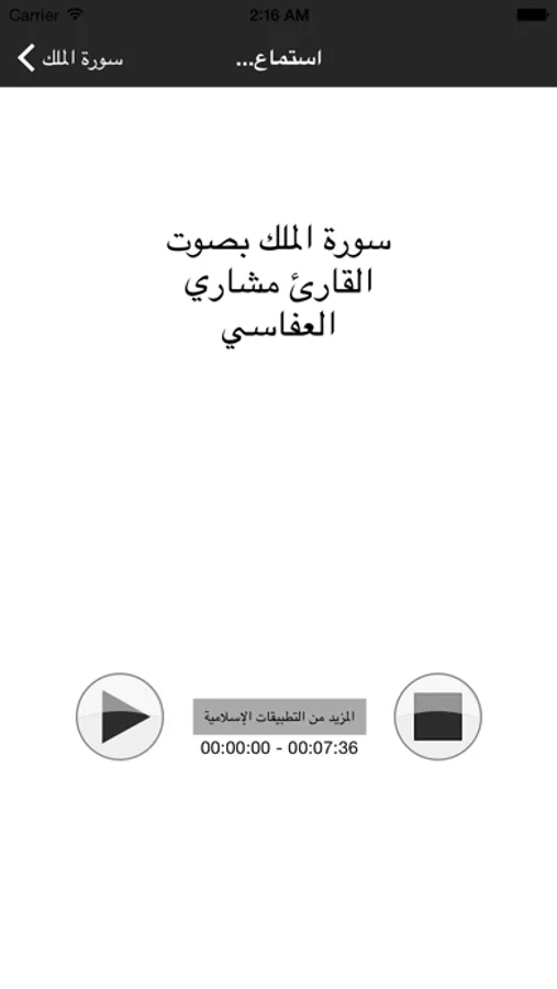 ** This app lets you listen to Surat Mulk, surah no 67 of the holy Quran in your mobile phone ! **