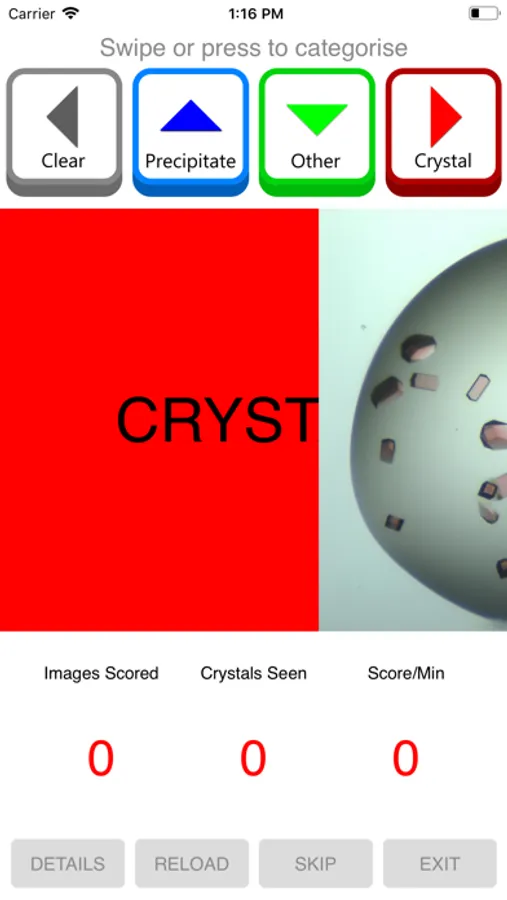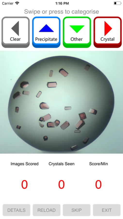 Cinder is an easy app to use, swipe right for crystals. Your classification of each experiment is pushed back to CSIRO.