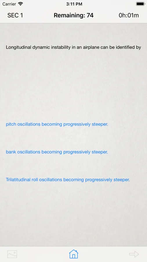Test Mode - Simulates the test you are going to take at a FAA Knowledge Test Center. In this mode, you are asked 100 questions that are pulled from the entire question bank.