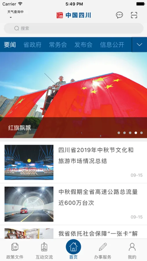 “中国四川”客户端开通省政府、常务会、发布会、访谈、民生、政策文件等栏目,权威发布省政府重大决策部署、政策文件和重要政务活动等信息,面向社会提供与政府业务相关的政务服务,建设基于政府与公众互动交流新渠道。