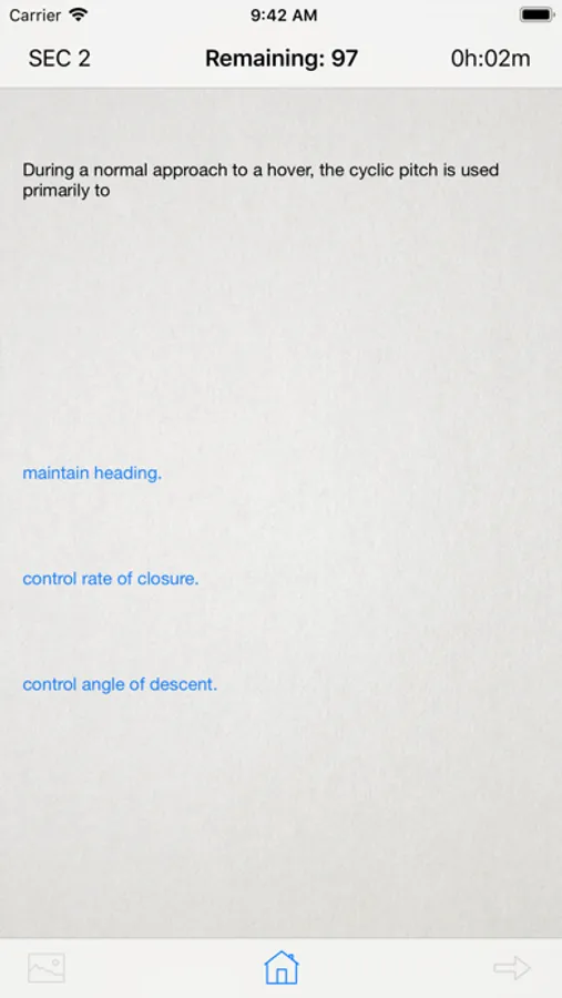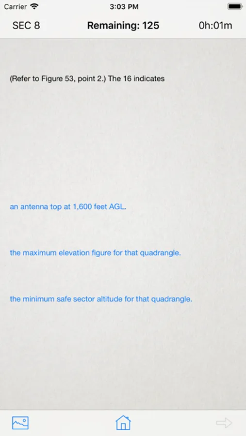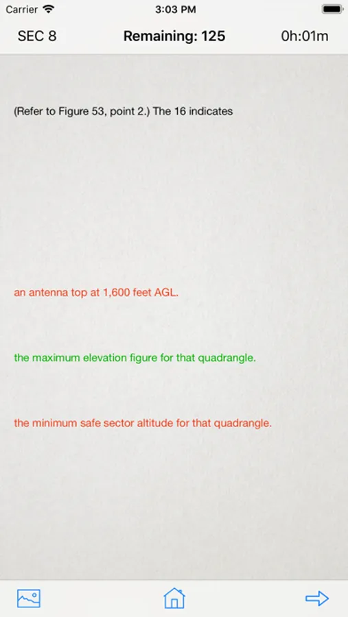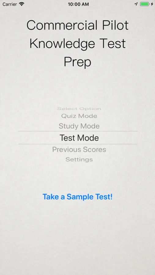 Test Mode - Simulates the test you are going to take at a FAA Knowledge Test Center. In this mode, you are asked 100 questions that are pulled from the entire question bank.