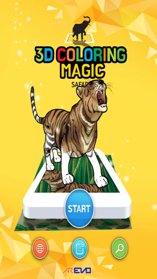 3. Color the printed image, open the ‘AREVO SAFARI’ app. Click 'START' button and then scan the key page.