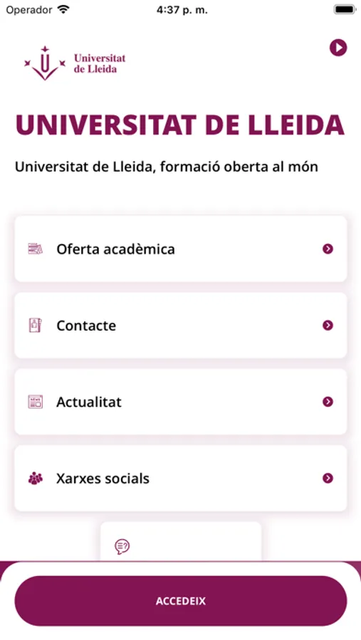 • Información de la universidad: Consulta toda la información sobre la Universitat de Lleida (eventos, noticias, oferta educativa, accesos…).