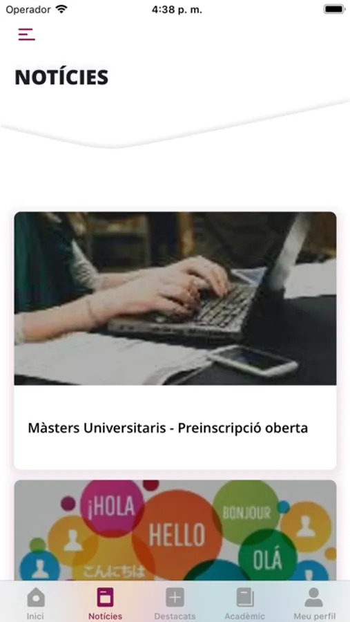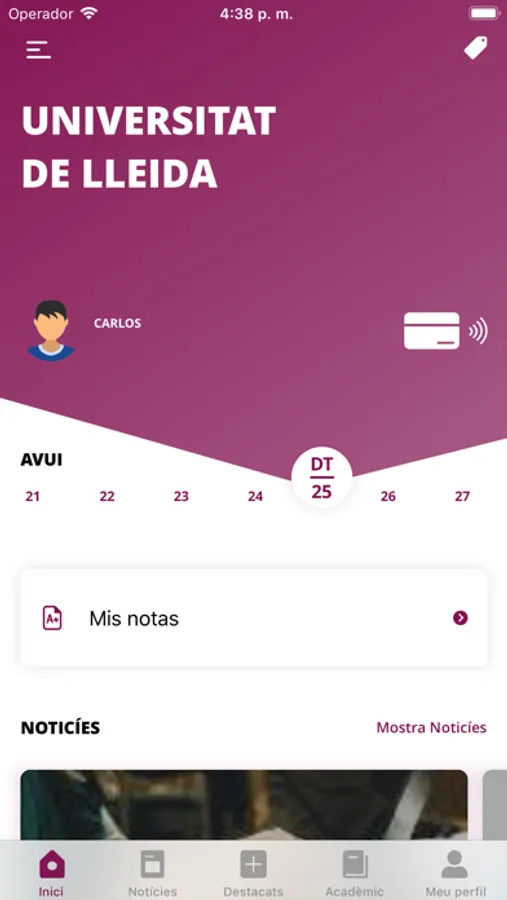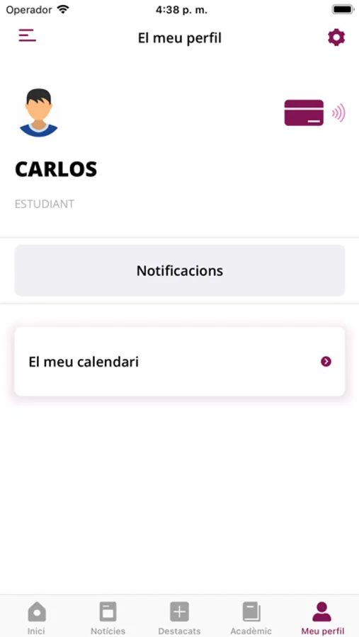 • Perfil privado: Todos tus datos personalizados según tu perfil universitario. Consulta tus asignaturas, calificaciones, etc. Y también tu tarjeta universitaria digital. ¡Siempre la llevarás contigo!