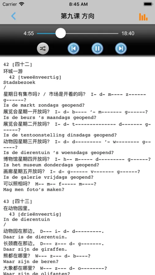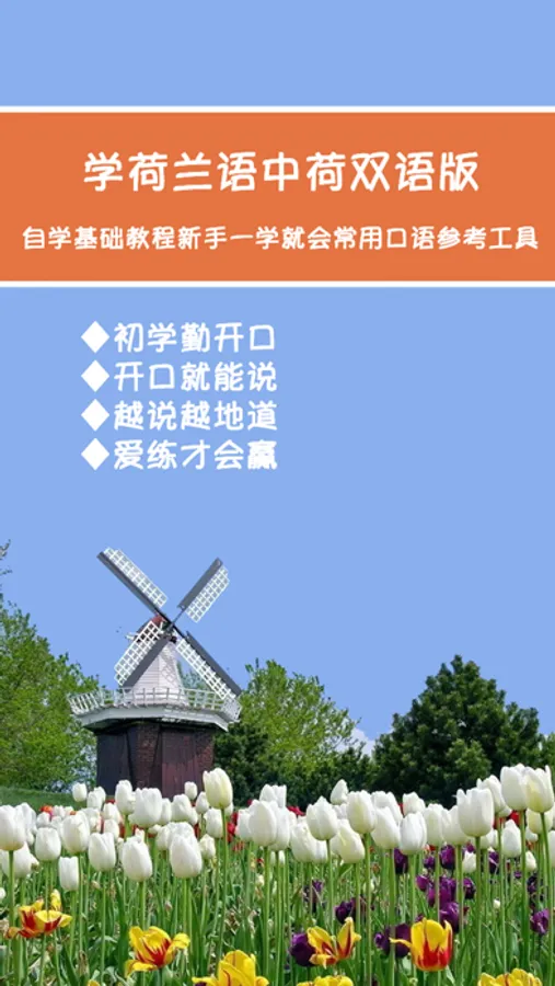 全文录音,发音标准清晰,音色纯正,您可以反复开口说,快速掌握一口流利的荷兰语。