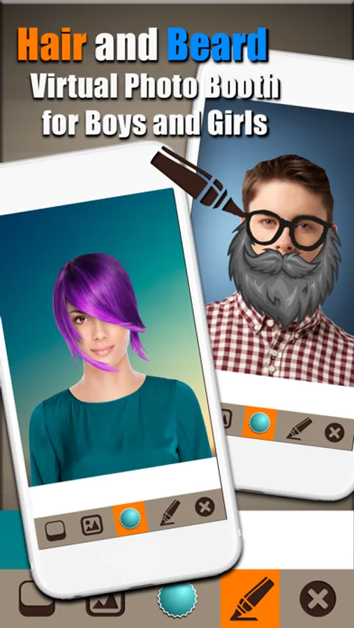 Do you need a change of style, but you are afraid to do anything drastic? Well, Hair and Beard Style Makeover is perfect for solving this dilemma! Just download this photo booth, and try out many virtual hairstyles! Whatever you prefer, just allow this virtual hairdresser to play with your hair and sit back! And the best part is- both boys and girls can experiment with our options! Men can browse through beards, mustache styles, and tons of other options are offered for girls, too. Play with elegant hairstyles that will express your personality, or go crazy and choose something totally unusual!