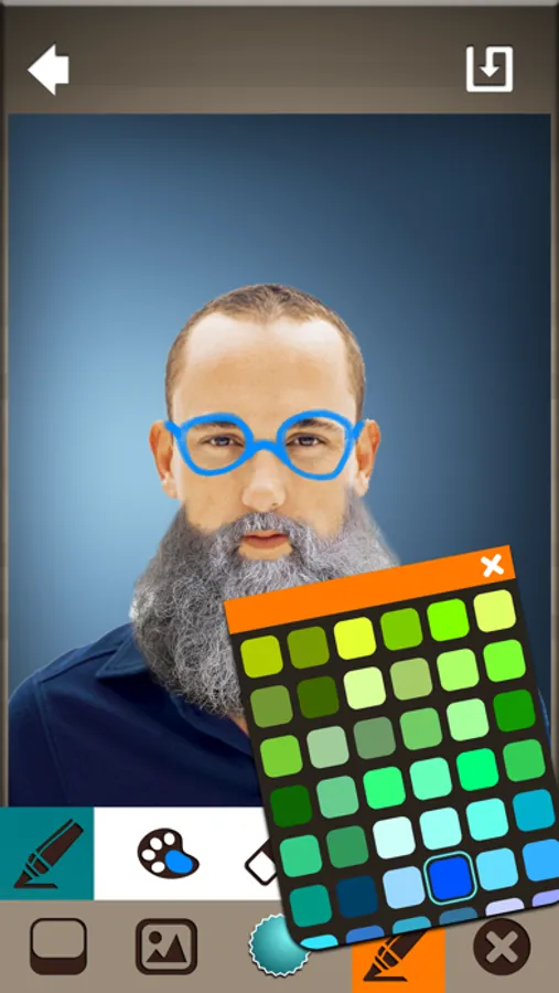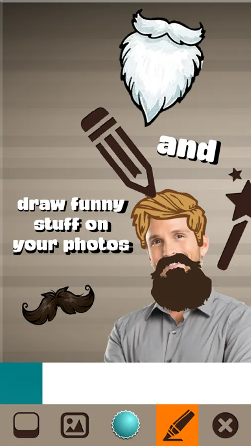 Don't forget to show off your impressive styling on social media with the help of a share button! All your friends will be jelly when they see your fashionista photos! This application is inspired by men who are lost for hairstyle ideas! So, if you want to change your look, enter this virtual hair studio and get tons of ideas! Check out our mustache stickers and decide if you want to grow them for real!
