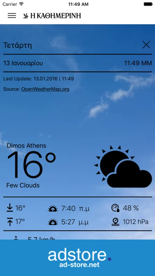 The mobile app of Kathimerini newspaper on line edition, provides swipe function between sections and stories, push notifications customisation, stories bookmark for offline reading, weather with gealocation, landscape reading mode and much more. Kathimenines Ekdoseis S.A. publishing group is founded upon a longstanding tradition in journalism from I Kathimerini (The Daily) newspaper, first printed in 1919. To this day, I Kathimerini is considered a standard-bearer and continues to play an influential role in Greece’s political and economic life.