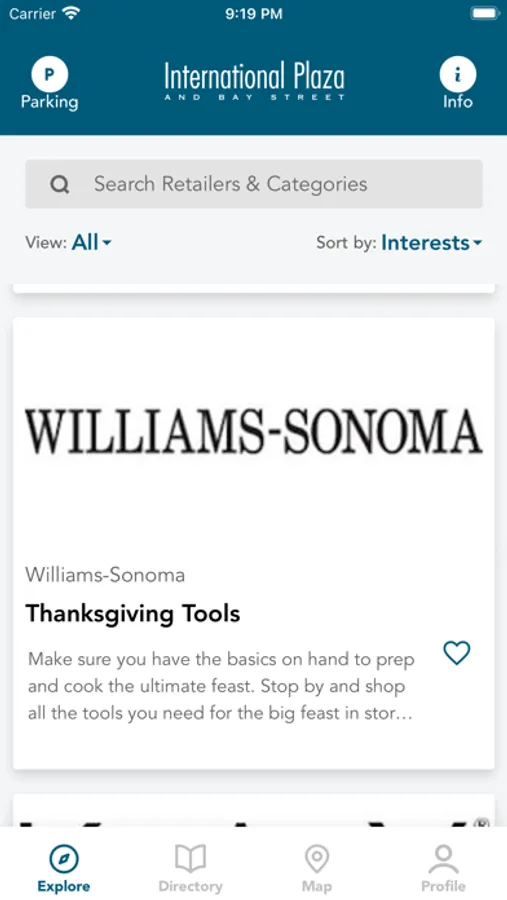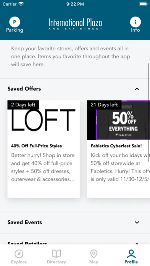 FAVORITES – Personalize your experience by selecting your favorite retailers, restaurants, offers and events.