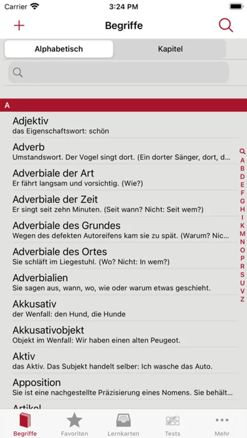 Diese App basiert auf dem Lehrmittel «Grammatik 7 bis 10» von Jürg M. Fankhauser aus dem hep Verlag. Sie enthält die wichtigsten Begriffsdefinitionen aus dem Buch – alphabetisch und nach Kapiteln geordnet.