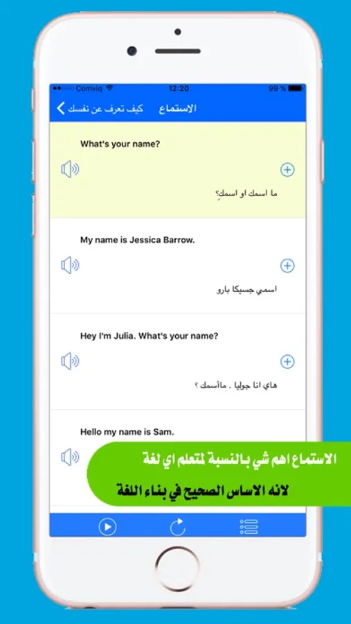 يمكنك الاستماع الى مفردات البرنامج حتى وان كان البرنامج يعمل في الخلف وهذا مفيد ان كنت تريد الاستماع الى المفردات وانت تمشي في الشارع مثلا