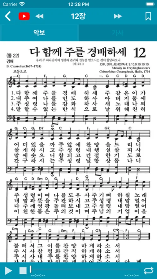 구찬송가 558곡의 악보, 가사가 담겨 있는 어플입니다.