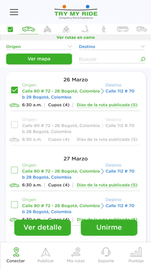 Try My Ride hace la movilidad amigable y sostenible, conectamos personas por medio de nuestra app (web y móvil) y nuestros servicios de bici, car pooling y van pooling para empleados y estudiantes.