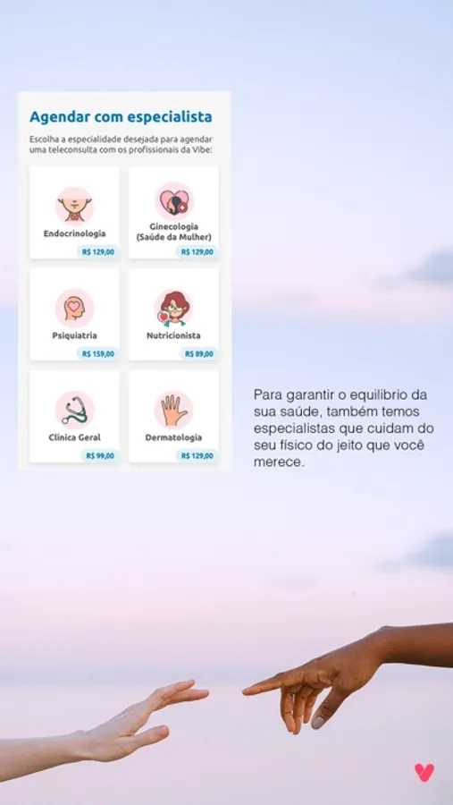 Com um time de saúde integrado, composto por psiquiatras, psicólogos e especialistas em saúde da mulher e da família, a Vibe cuida de você em todos os momentos.