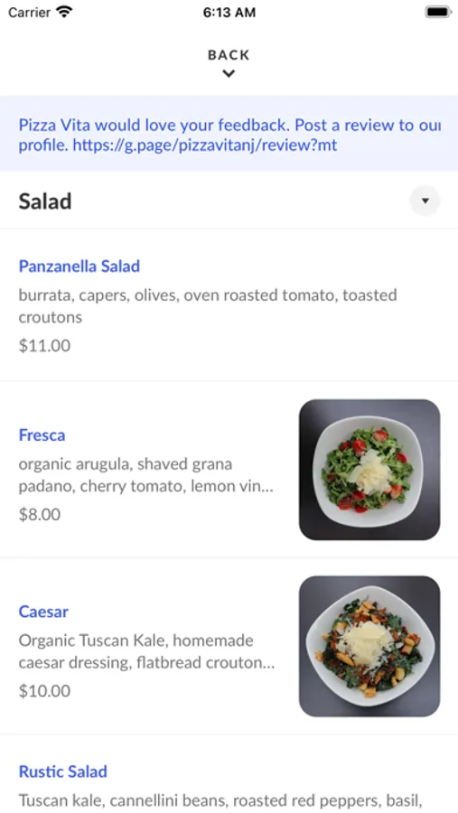 With the Pizza Vita mobile app, ordering food has never been easier. Whether you're looking for a quick snack or a full meal, we've got you covered. Just browse our easy-to-use menu, customize it how you'd like, place your order using our secure payment system, and sit back! A push notification will alert you when your order will be ready.