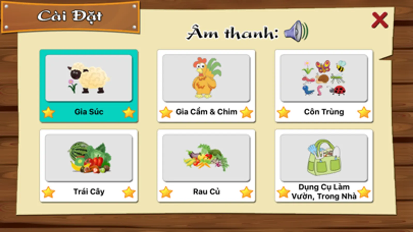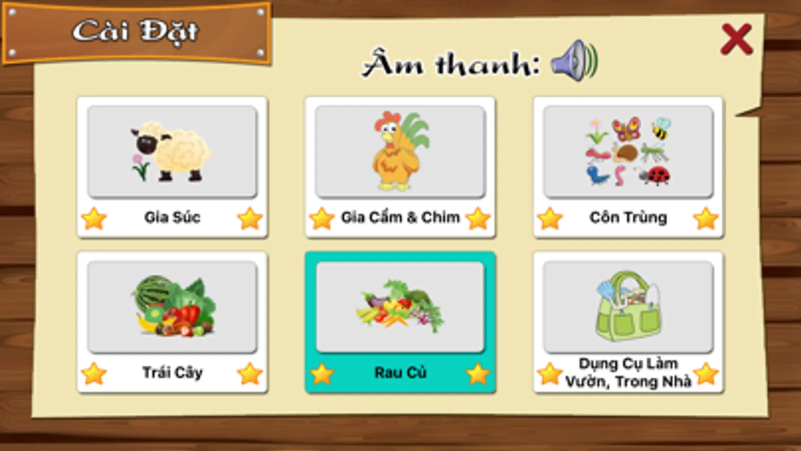 Ứng dụng được thiết kế cho trẻ từ 3 tới 6 tuổi, những hình ảnh, âm thanh, tên,… dùng để minh hoạ cho bé tìm hiểu về: động vật, trái cây, rau củ, dụng cụ làm vườn, dụng cụ trong nhà,…