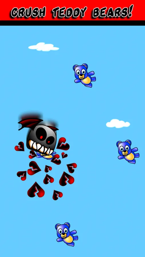 Valentines, hearts, teddies, rainbows... It´s time to save the world from a love apocalypse. Crush the cute teddy bears! But avoid hearts, or you'll be doomed.
