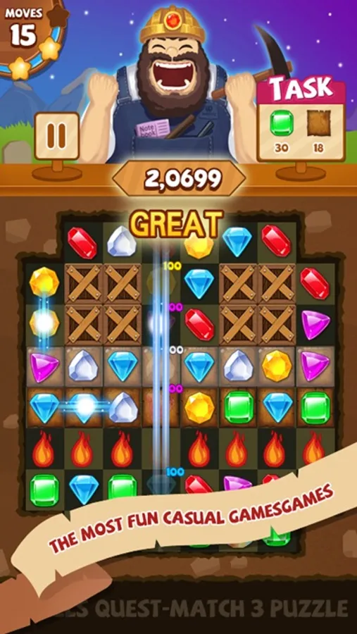 Just join Jewels Quest-Match 3 Puzzle, together with small partners were gems journey!