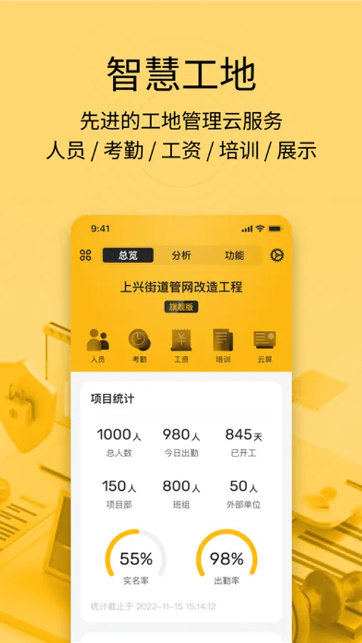 【项目管理】专业的建筑项目工地管理云服务,人员管理、班组管理、考勤、工资、培训、实名制、分账制、工地智能硬件管理等诸多服务一应俱全。