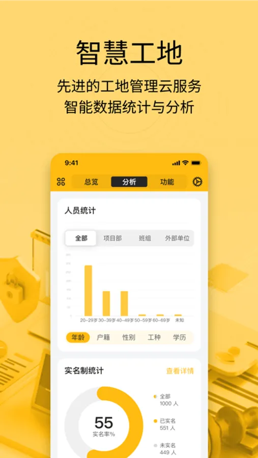 【数据分析】便捷的数据分析功能,未出勤工人、超龄工人、工作档案不完整工人、未发放工资工人等信息即时统计。