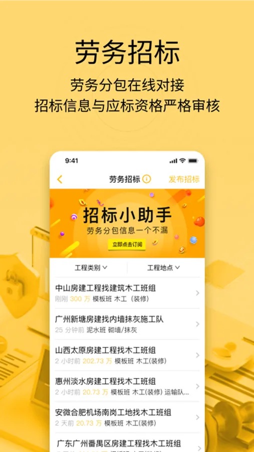 【劳务招标】劳务分包在线发布,实时更新,招标信息严格审核,应标资格严格筛选,班组找活新途径。