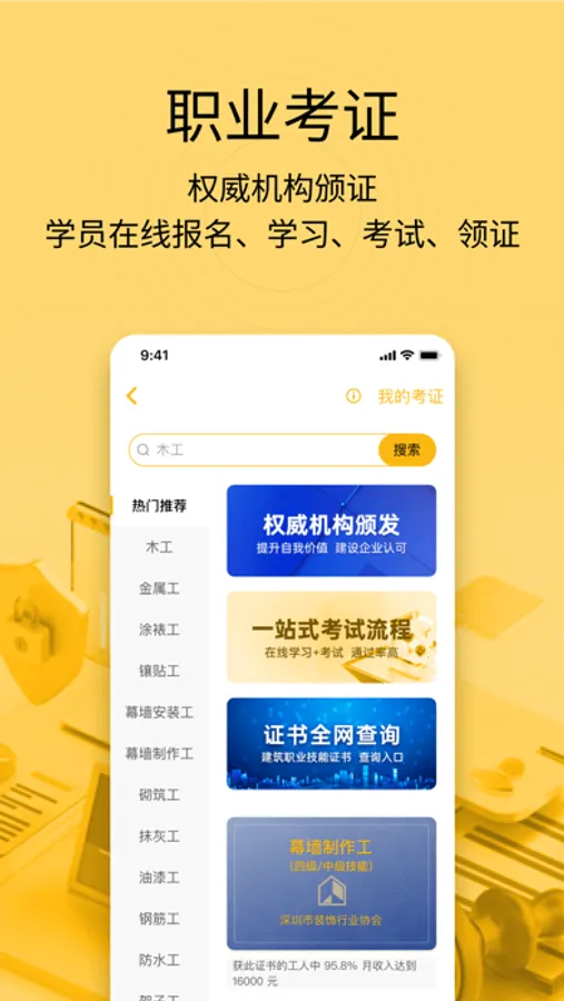 【职业考证】权威机构颁证,在线报名、学习、考试、领取职业技能证书,过程简单,获证快速。