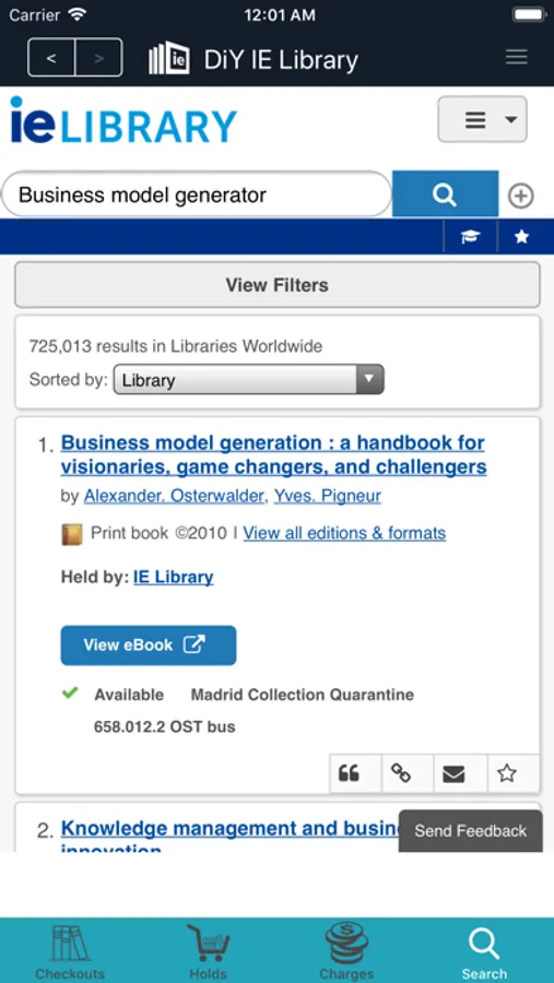 DiY IEU Library APP is available to all the IE Community, students, professors, researchers, staff and alumni. IE credentials are required to access it, and will be stored by the application as long as the session is not closed. It will be necessary to allow the access protocol to the OCLC’s API.