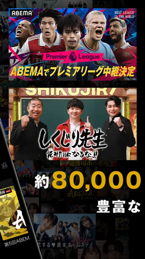 さらに、月額960円のABEMAプレミアムに登録すると、限定コンテンツを見ることができたり、「動画ダウンロード機能」「見逃しコメント機能」が利用できるようになるなど、「ABEMA」をよりお楽しみいただけます。