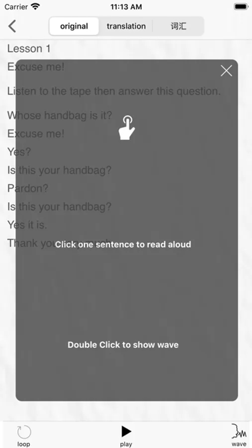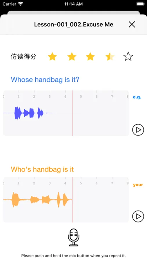 本应用的主要功能和目的是利用声音生成的波形以及学习者自己的声音回放,使外语学习者在发音练习上通过视觉和听觉对自己的发音进行有意识的和有效的改进。
