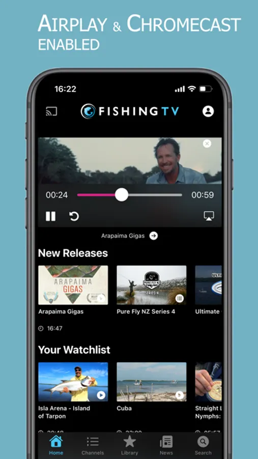 Fishing TV provides the best HD fishing entertainment from around the world and brings it directly to your iPhone or iPad. Our app contains over 1000 professionally produced TV programs, feature length films, short tips and more, covering every kind of fishing out there. Content is regularly updated and you can discover our latest releases through our email newsletters, in app notifications or simply by checking the app regularly.