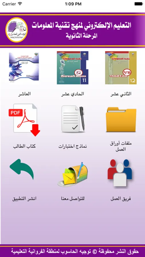تطبيق التعليم الإلكتروني لمادة تقنية المعلومات - بالمرحلة الثانوية بدولة الكويت يهدف إلى مساعدة المعلم والمتعلم في فهم المفاهيم والمهارات الحاسوبية لمنهج المرحلة الثانوية من خلال حل أوراق العمل لكل درس