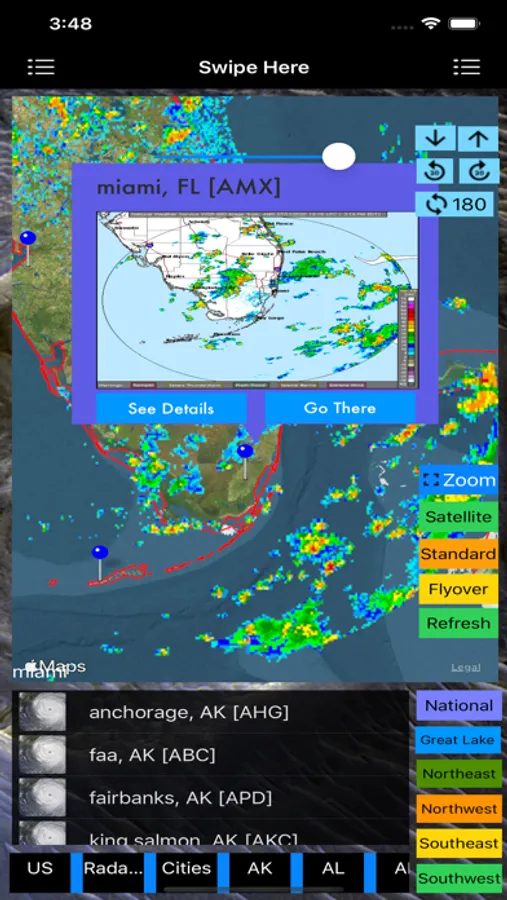 - The first app provides Radar images in 3D view by selecting Flyover map mode on the top.