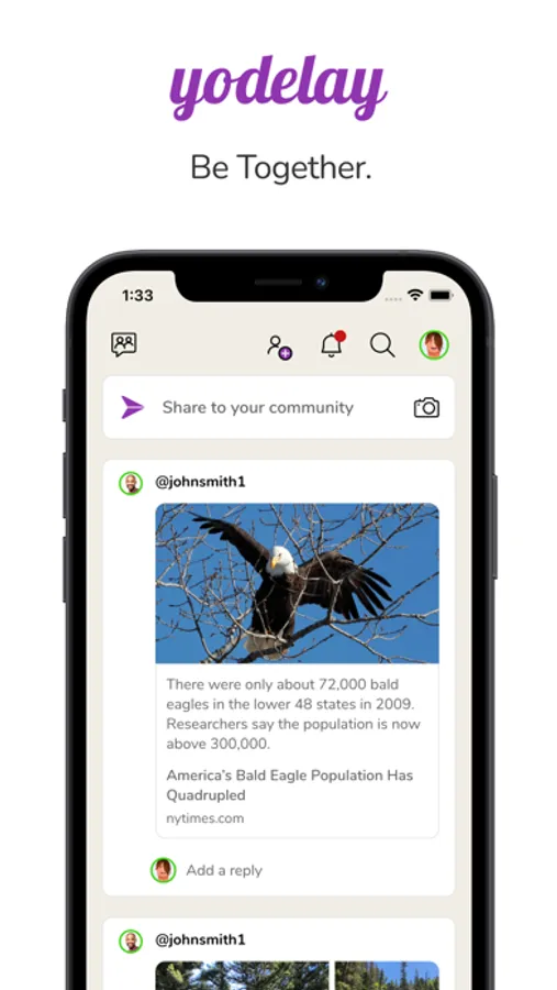 Yodelay is an ad-free social media experience built from the ground up with privacy and community in mind. We believe that there is a space between group texting and broad social media sharing for an app that enables all of the social media experience that you expect from an ad-based platform, but with the privacy of having those moments secure between you and those you care about. Share what you want, with who you want - our mission and promise to you is that Yodelay will never show you ads, or sell your data. Period.