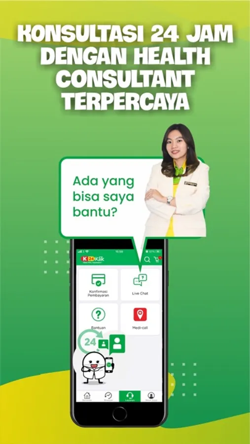 Selain menyediakan lebih dari 13 ribu produk kesehatan, K24Klik membuka konsultasi 24 jam dengan HEALTH CONSULTANT. Bingung butuh obat yang mana? Konsultasi aja ke health consultant kami.
