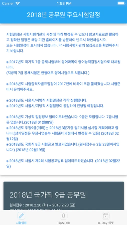 2018년 공무원 시험일정을 제공합니다.