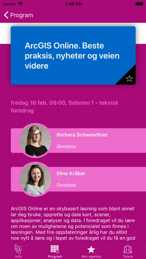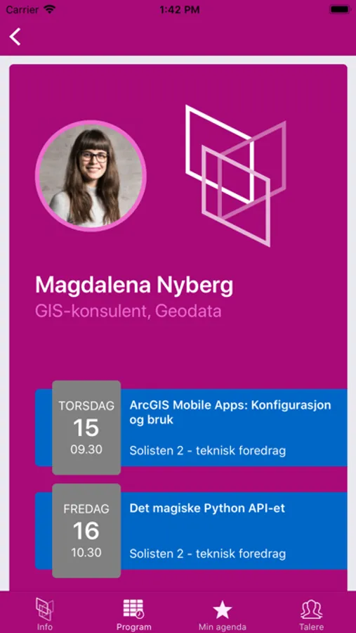 GeoTek - en konferanse om geografisk informasjon og teknologi. Kart og geografisk informasjon er rundt oss hele tiden. Fra appen du bruker til å finne ut hvilken vei som er raskest å kjøre, til løsninger som beregner muligheter for flom - og satelittdata som kan forutsi klimaendringer. Denne appen viser programmet og informasjon knyttet til GeoTek.