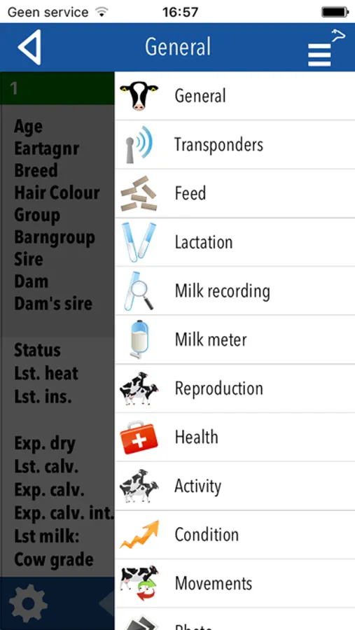 - Individual cow information