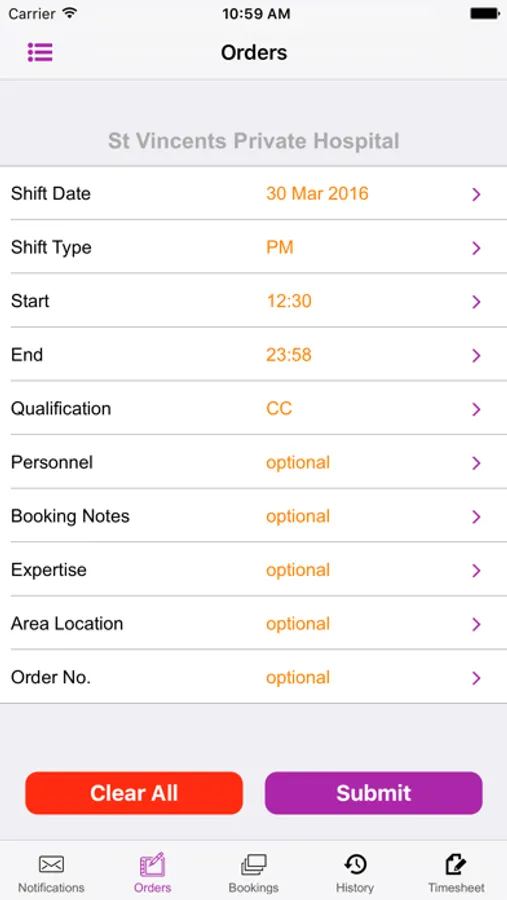 • Order - new bookings can be entered in seconds. Plus by with the unique ‘Personnel’ field you can instantly secure the best available agency staff for your facility, instantly filling even last minute shift replacements without even calling the company.