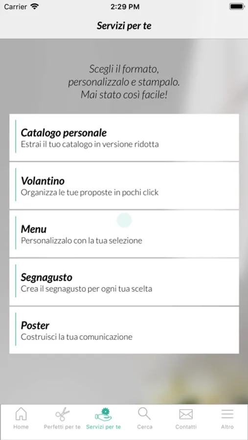 - Personalizza i tuoi materiali espositivi. Sarà sufficiente selezionare i prodotti e il formato, riceverai un PDF pronto per essere stampato.